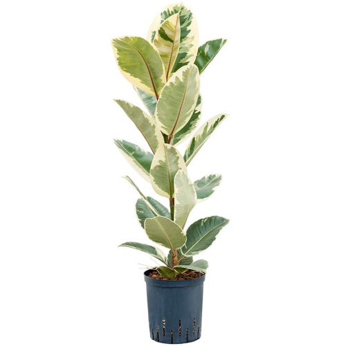 De Ficus Elastica ‘Tineke’ is een sterke kamerplant. Deze hippe kamerplant wordt ook wel de rubberplant genoemd. Deze ficus heeft bont blad en een fraaie bladtekening